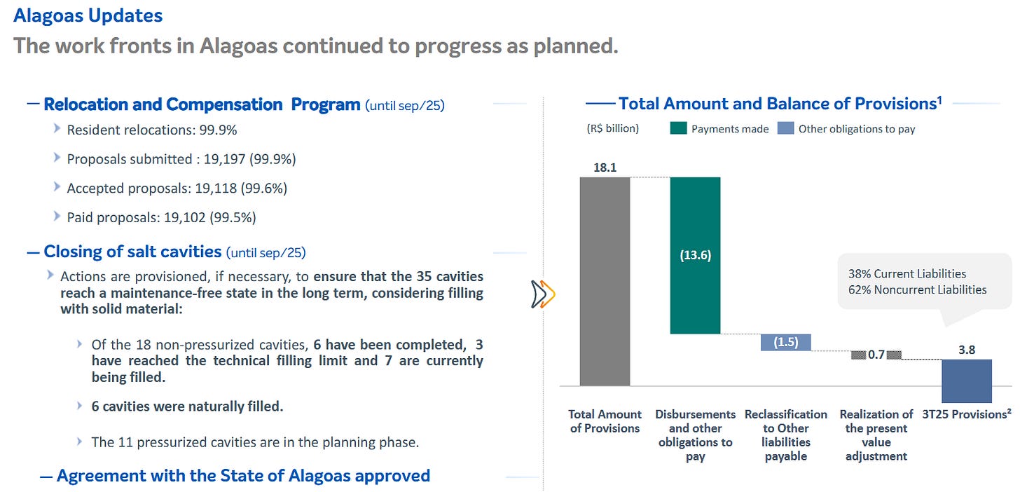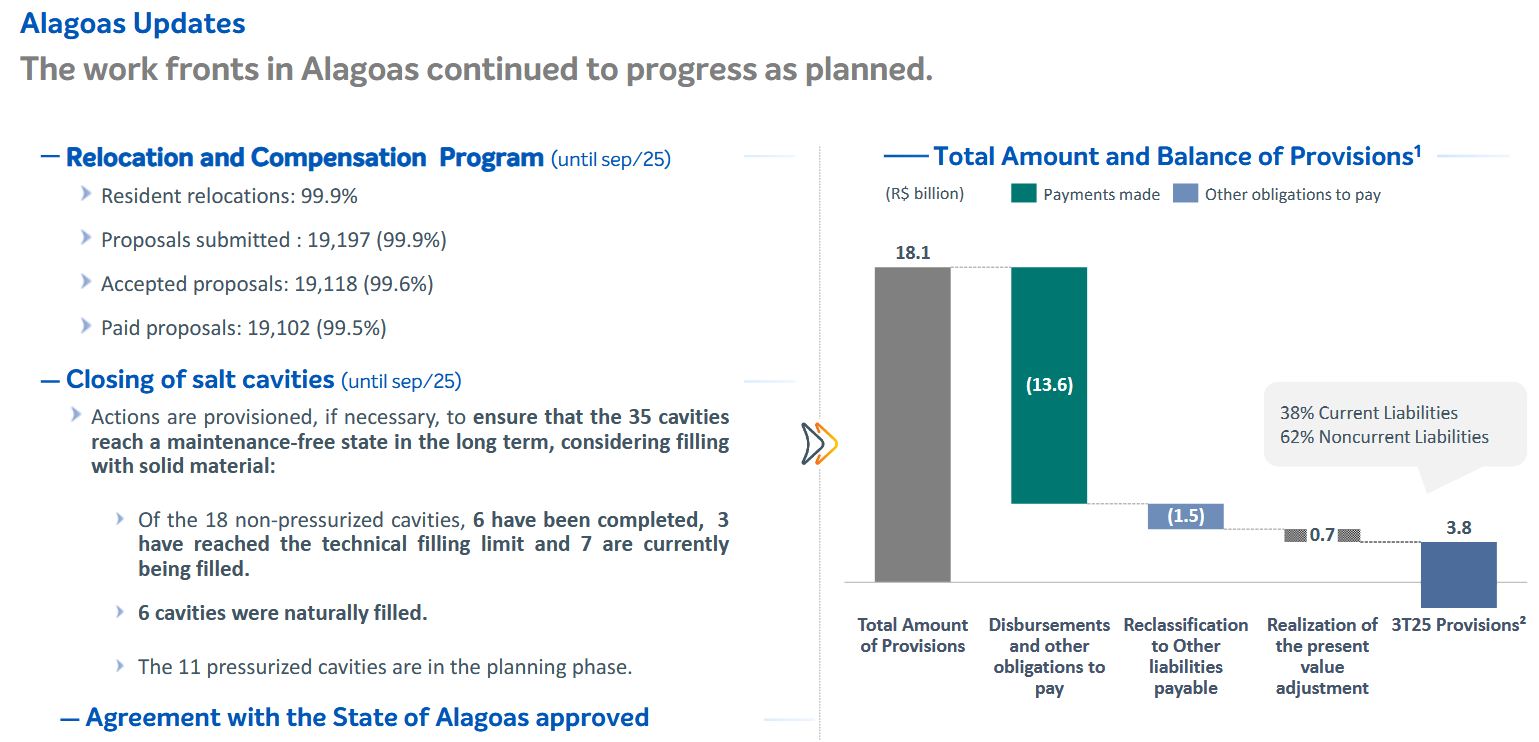 By the end of September 30, 2025, Braskem had effectively moved the Alagoas crisis into its final execution phase, with most operational and financial fronts largely completed.