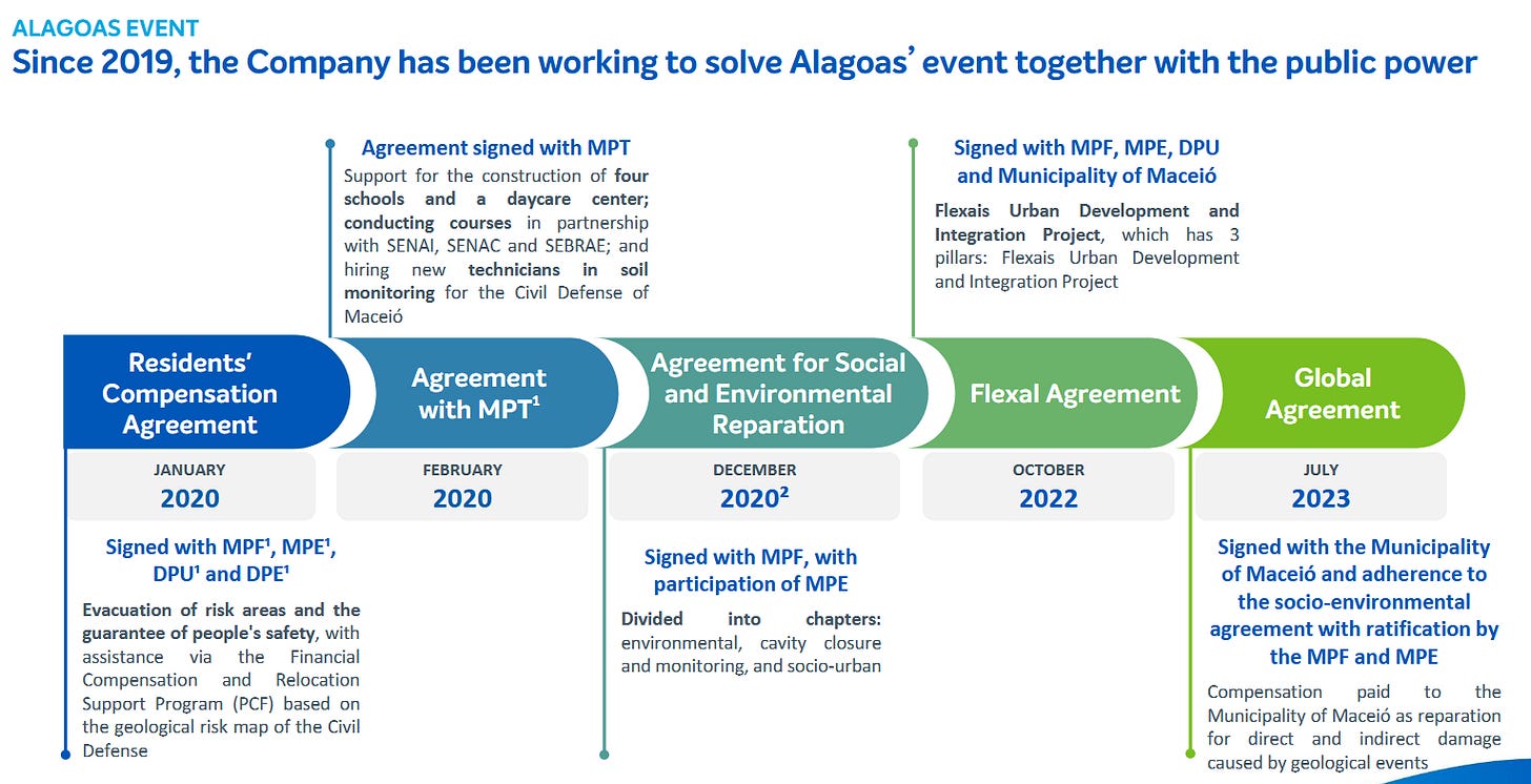 I genuinely believe the Braskem crisis in Alagoas is finally turning a corner. The complete halt of rock salt extraction in May 2019 and a structured, ANM‑approved plan to permanently close the 35 wells — with work due to finish by mid‑2026 — have been pivotal.