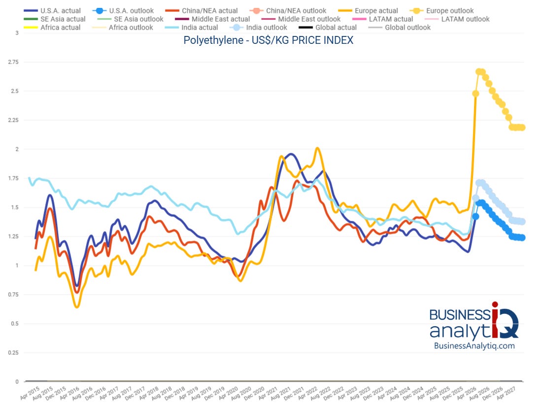 Bottom line: the plastics complex is flashing the same regional divergences that defined the 2020–2021 volatility.